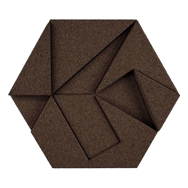 以軟木拼出室內牆面設計。來自葡萄牙,採用最新成型技術,將軟木製成獨特有機造型,所有產品皆整體著色,非表面著色,展現軟木的天然質感及獨特紋理。