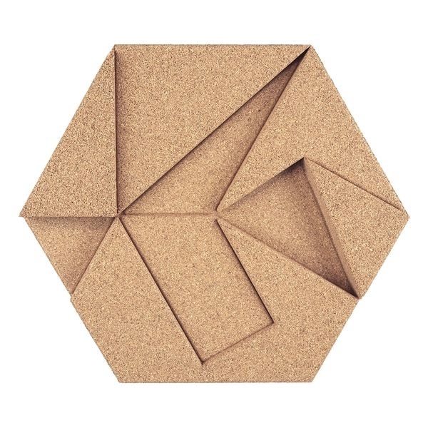 以軟木拼出室內牆面設計。來自葡萄牙,採用最新成型技術,將軟木製成獨特有機造型,所有產品皆整體著色,非表面著色,展現軟木的天然質感及獨特紋理。
