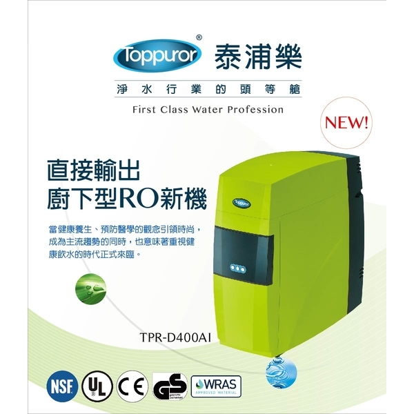 ◎品名/型號:泰浦樂 Toppuror TPR-D400AI 雅致型直出RO水機◎濾心: