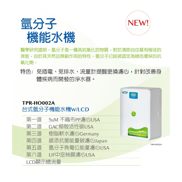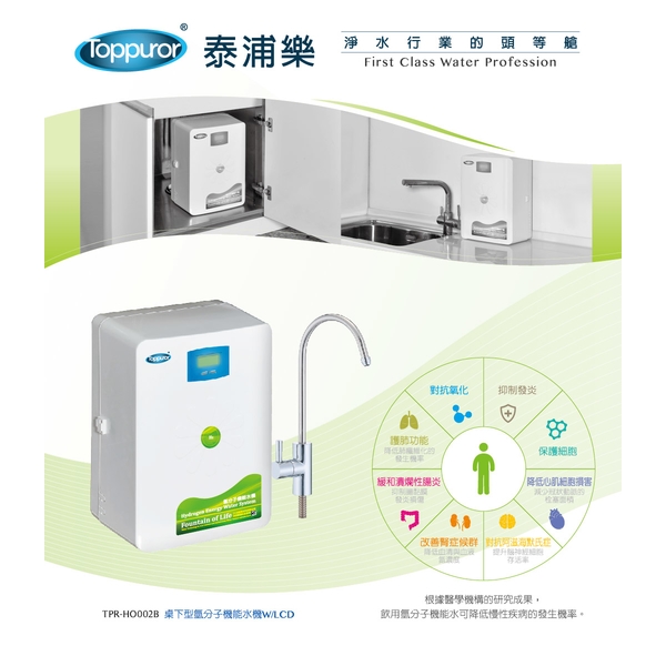 ◎品名/型號:泰浦樂 Toppuror TPR-HO002A 廚下型水素水機