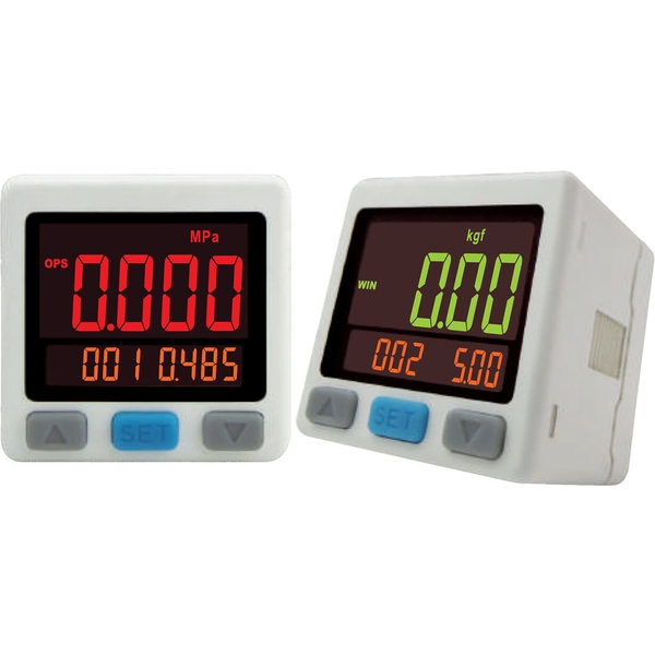 DPG-A70 數位壓力錶有3 種可用產品類型(聯成壓 / 真空壓 / 正壓) ,採用4 位數7 段LCD顯示,2 種顏色 (紅&綠) 用於主顯示,橙色用於副顯示。適用於空間有限的場所與過濾空氣、非腐蝕性、非可燃性氣體的測量。