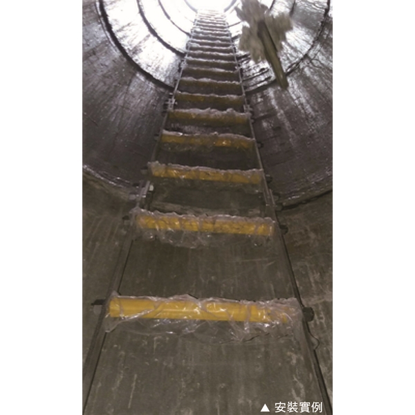 此組合式爬梯安裝於外牆、池塘、人孔、手孔、橋梁等結構物上,或需防銹、耐酸鹼之環境。