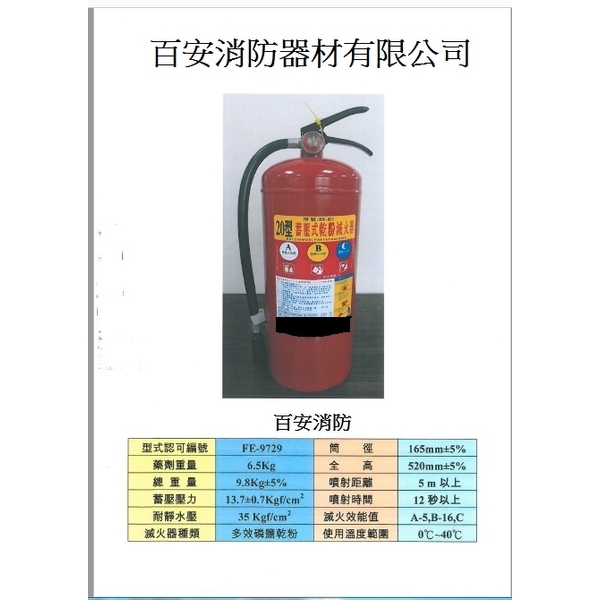 專營各式防火逃生器材的經銷買賣公司。我們提供現場安裝維修、火警受信總機、避難緩降機、緊急發電機、汽車用滅火器、緊急電源消防栓、整套式消防幫浦、百安牌環保滅火器等多種產品和服務。我們專注於消防設備工程、消防設計施工、消防泵浦、消防進出口業務、工安器材總匯、防煙面罩、防毒面具、滅火器換藥、停電照明燈、廣播設備、消防製造業、中央信託局供應商、119火災通報裝置、住宅用火災警報器、10P滅火器、20P滅火器等領域。