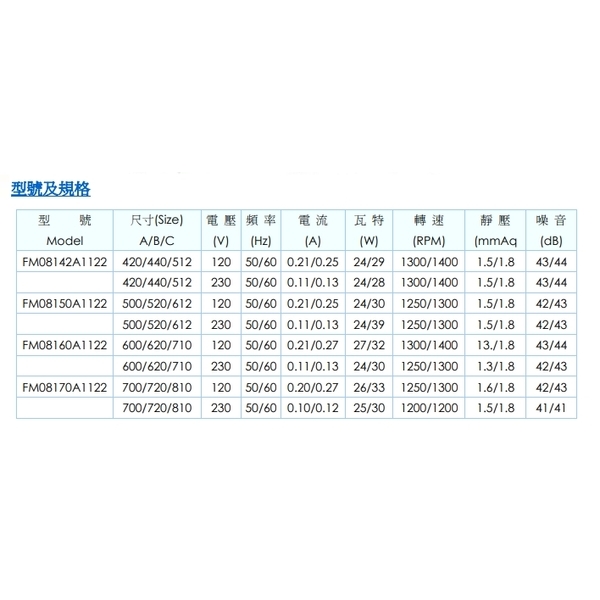 AC橫流扇產品說明