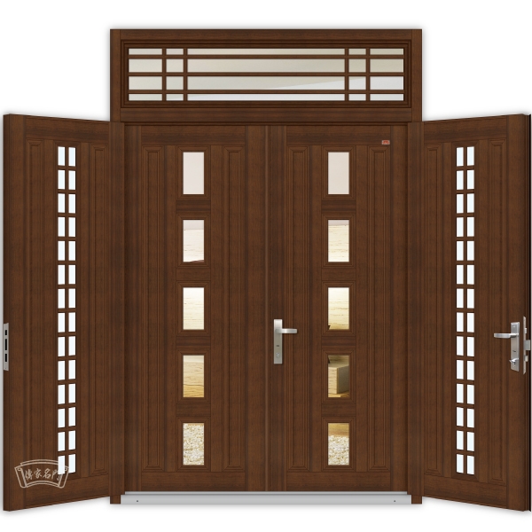 外玄關門:鋁板+雙層玻璃梅花管格子門