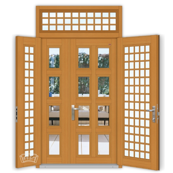 外玄關門:雙層玻璃梅花管格子門