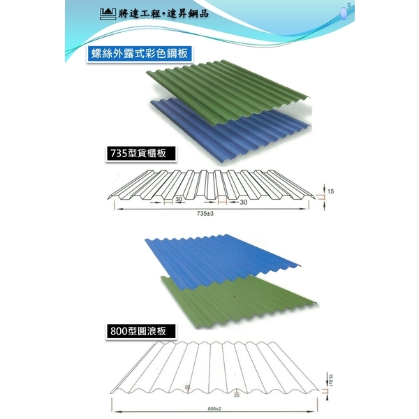 型號:735型貨櫃板&800型圓浪板螺絲外露式鋼板