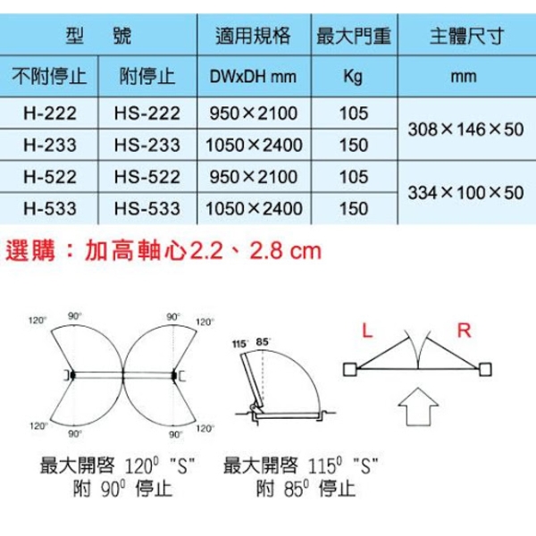 ▪︎ 單向開啟(左右區分)、雙向開啟
