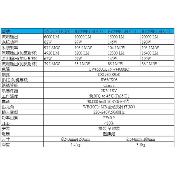 型號: BY239P LED60