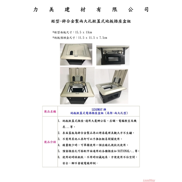 鋅合金兩大孔電源盒-高架專為高架地板設計,提供堅固耐用的電源解決方案。其高強度鋅合金材質能有效抵抗磨損與腐蝕,確保長期穩定使用。配備兩大孔設計,能夠滿足更大功率設備的電力需求,適用於各種商業與辦公空間。無論是數據中心、辦公室還是會議室,這款電源盒都能提供高效、可靠的電力連接,協助維持整潔有序的工作環境