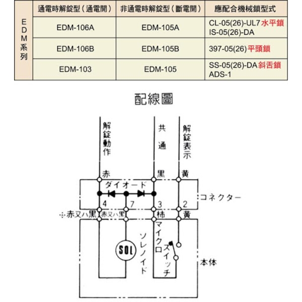 SHOWA EDM陰極鎖(通電開) : EDM-103,106A,106BSHOWA EDM陰極鎖(斷電開) : EDM-105A,105B,