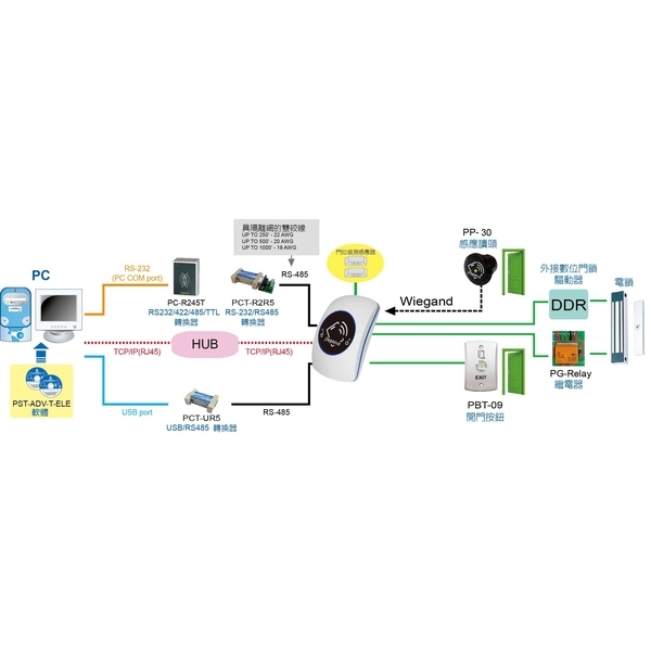 PP-56XNR5: EM連線型感應讀卡機,32000人,32000筆,RS-485
