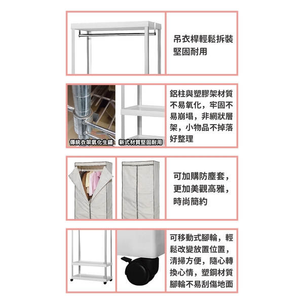 2. 鋁柱與塑膠架材質不易氧化,牢固不易崩塌,非網狀層架,小物品不掉落好整理。