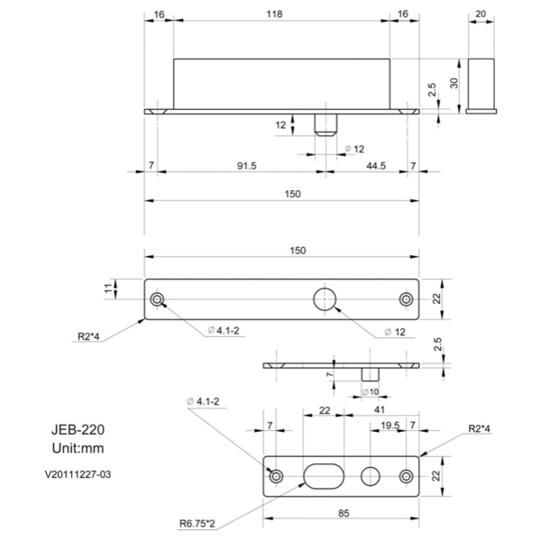 ● 磁鐵固定面板:85(L) x 22(W) X 10(H)mm