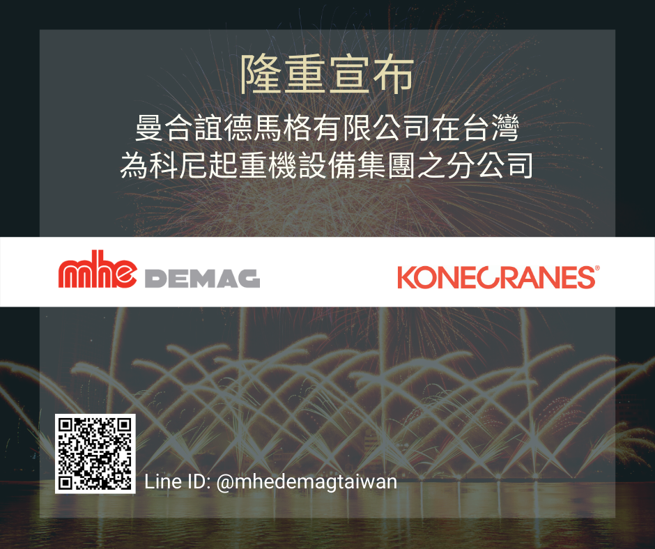 曼合誼德馬格有限公司開始在台灣銷售科尼起重機設備產品啦!