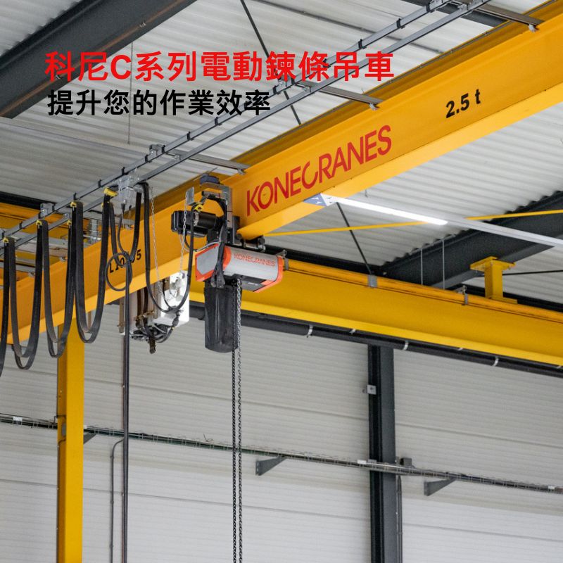 科尼C系列電動鍊條吊車不只是一台普通吊車,也改變您的作業效率。擁有良好的實績和終身潤滑的齒輪箱,您可以信賴其耐用性和始終如一的性能。由於此C系列電動鍊條吊車是由我們專門為客戶長期打造的,無需再擔心頻繁維護或故障。