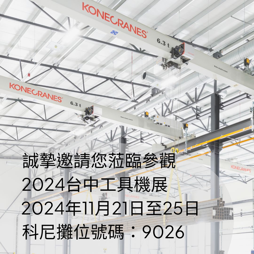 誠摯邀請您蒞臨科尼起重機攤位,近距離體驗優質起重設備,提升您的營運效率!現場展示的C系列鍊條吊車及CXT鋼索吊車,不僅高效能,還提高安全性與生產力,幫助優化您的作業流程。