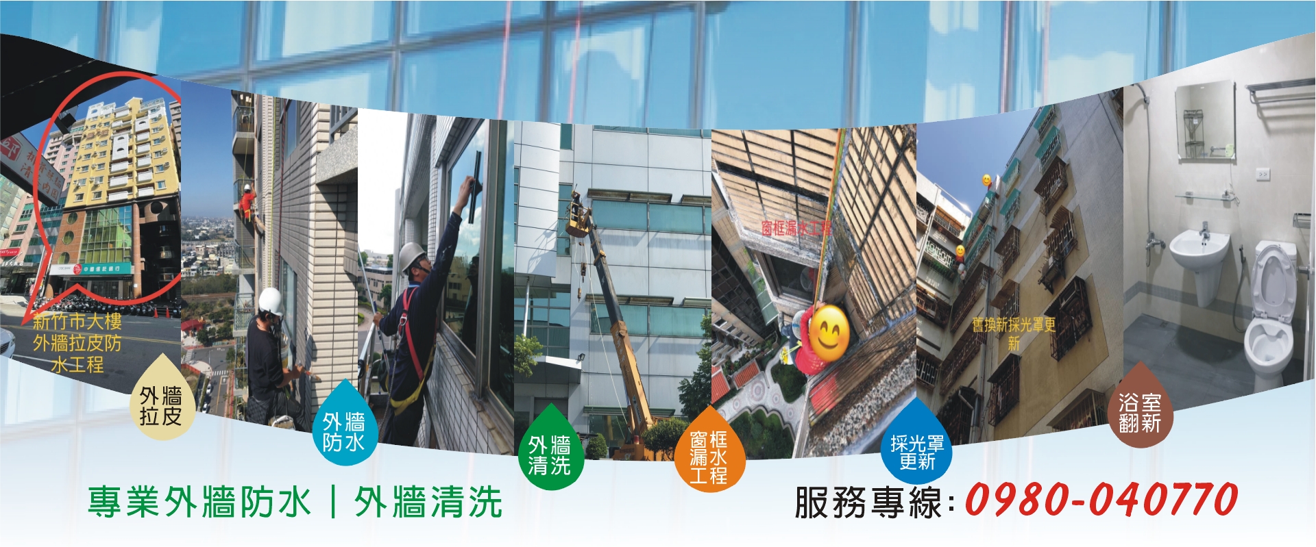 外牆防水、外牆清洗、壁癌修護、防水隔熱、PU防水外牆工程、洗窗機出租、房屋修繕、高空作業施工、屋瓦拆除修繕、屋頂保養油漆、PC採光罩、鐵皮屋頂隔熱工程、窗框漏水抓漏、台中外牆防水、台中屋頂防水、台中蜘蛛人作業、台中高空作業、台中外牆清洗、台中洗窗機出租、台中屋瓦拆除修繕、台中鐵皮防水隔熱、台中PC採光罩、台中防水工程、新竹防水抓漏工程、台中外牆磁磚修補、新竹外牆磁磚修繕、彰化防水工程、彰化外牆防水