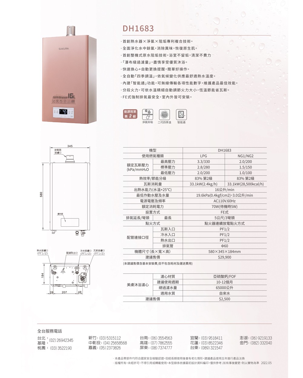 【SAKURA 櫻花】美膚沐浴熱水器DH1683