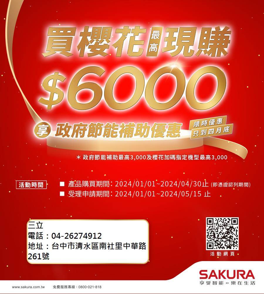 購買時間選購指定機型,櫻花加碼最高 3000 元